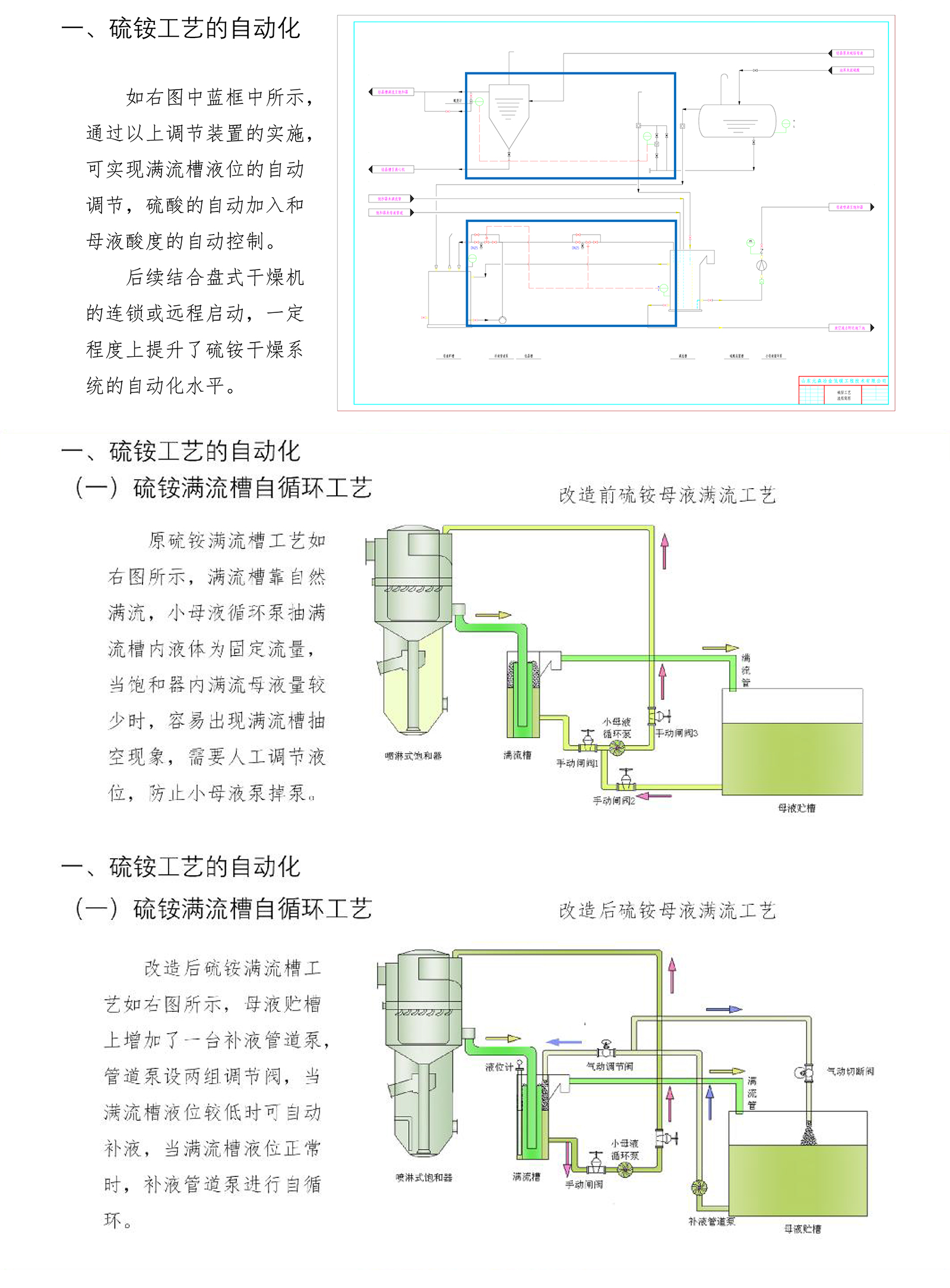 本方案擬在母液循環(huán)、自動加酸、硫銨產(chǎn)品干燥等方面進行自動化改造,為提升硫銨單元智能化水平提供解決方案。