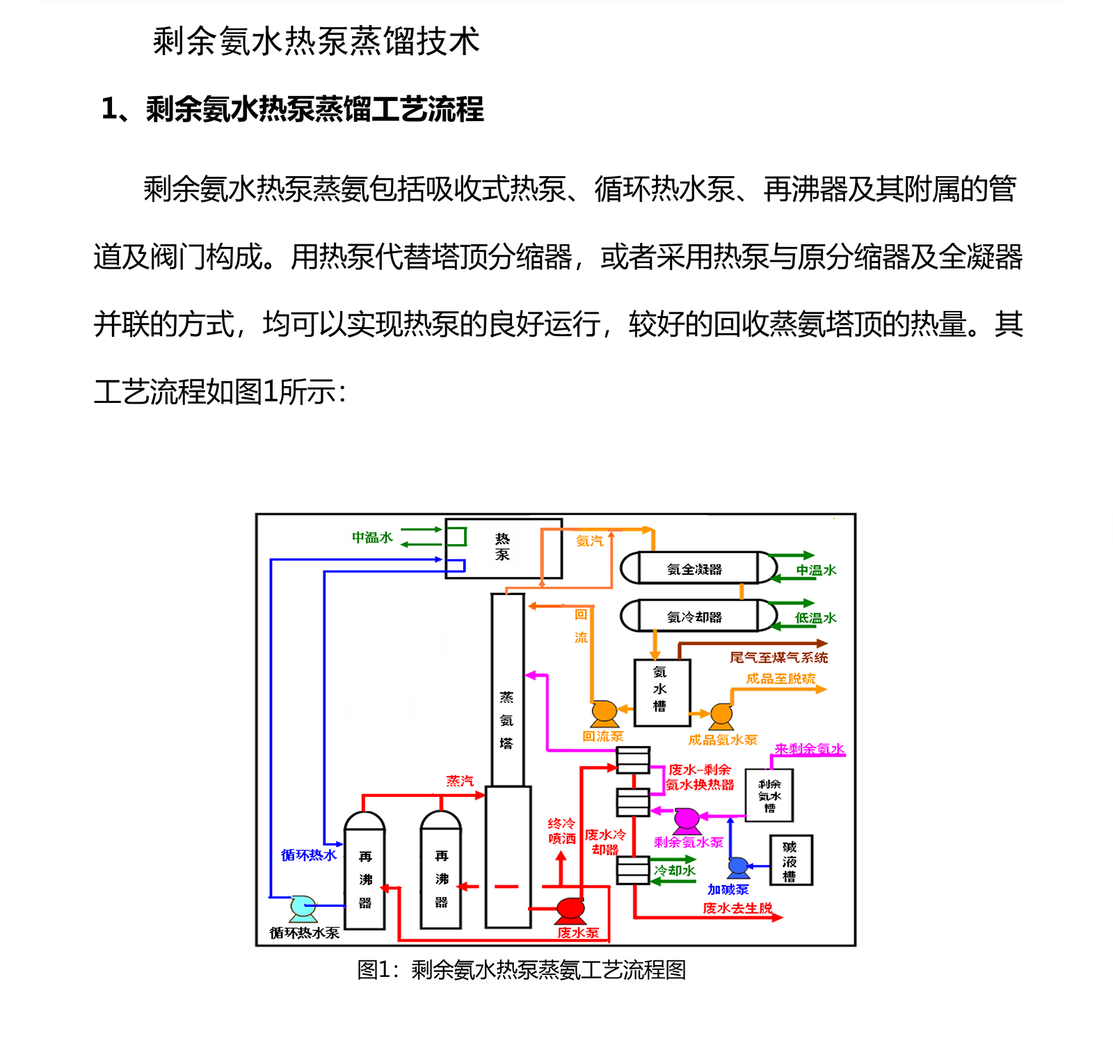 煉焦過程中產(chǎn)生的剩余氨水含氨氮3000mg/L,必須經(jīng)加堿蒸氨工藝使 氨氮降至200mg/L以下才能進(jìn)入生化工序。剩余氨水蒸氨是利用氨與水沸點(diǎn) 不同進(jìn)行分離的蒸餾過程,需以蒸汽或煤氣為熱源提供蒸餾熱量,- -般蒸汽 耗量為150~ 200kg/t剩余氨水。